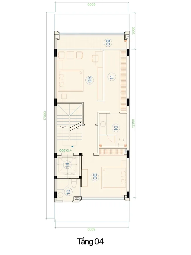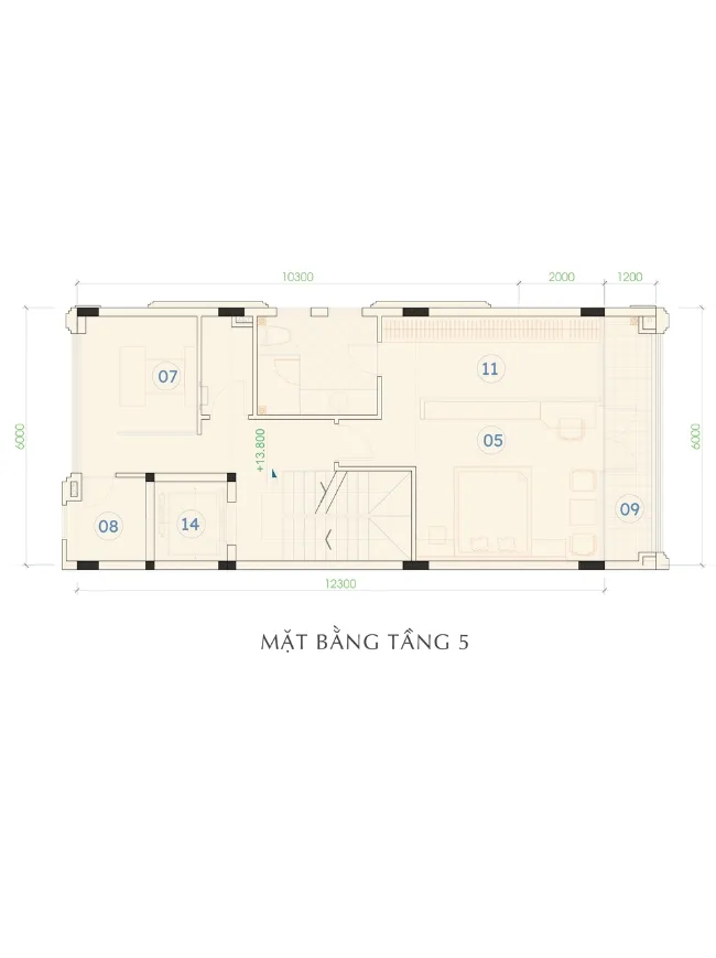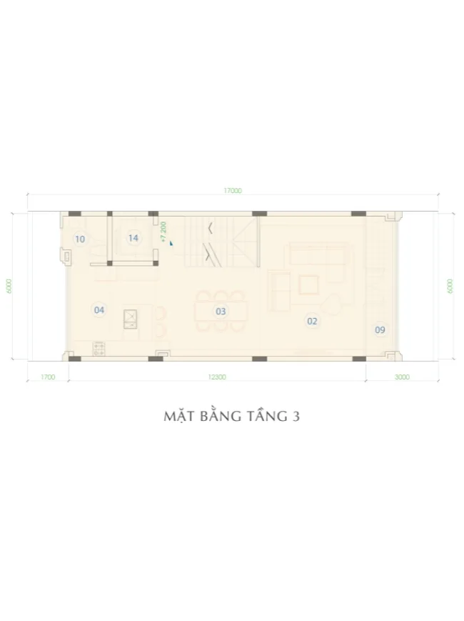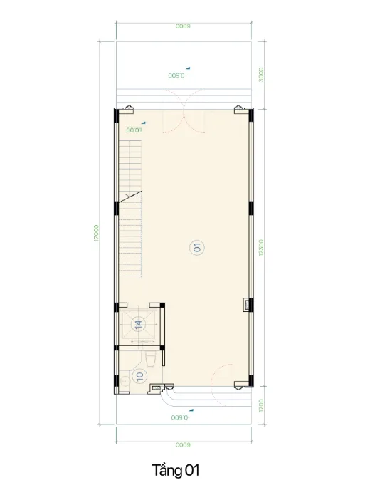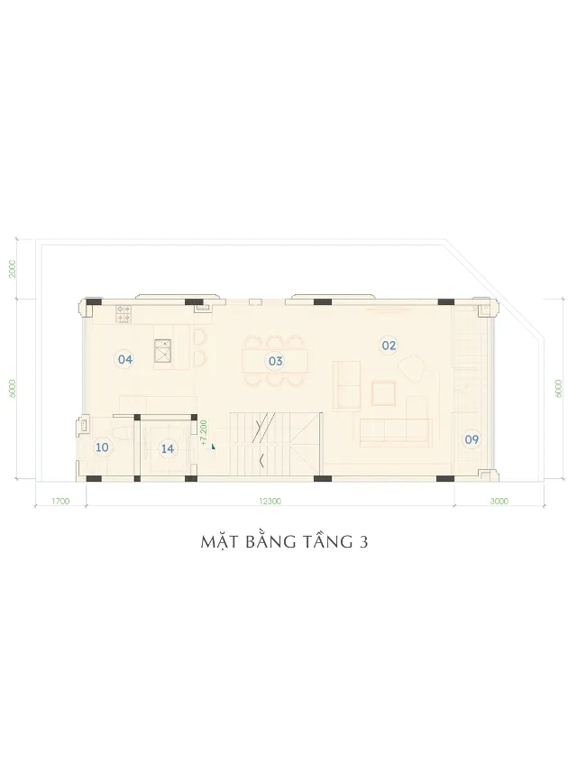 Shophouse Loại B (126 căn): Kích thước 6m x 17m