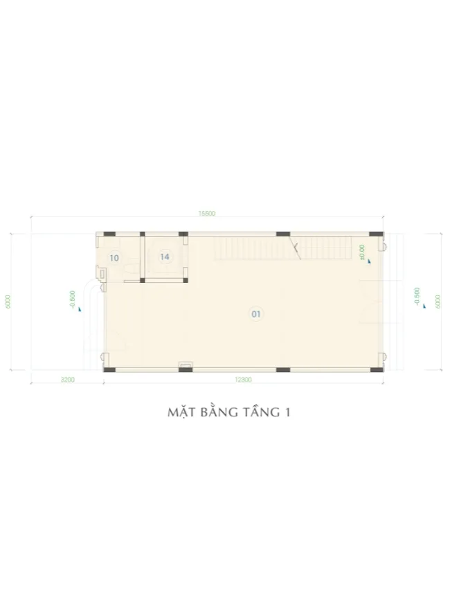 Shophouse Loại A (42 căn): Kích thước 6m x 15,5m